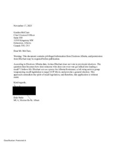 Morinville – St. Albert’s Member of the Legislative Assembly is permitted to respond to the Notice of Recall Petition. Here is that response.