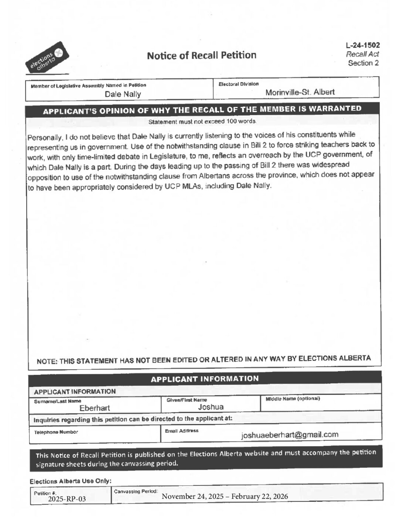 Elections Alberta may contact signers to verify information.